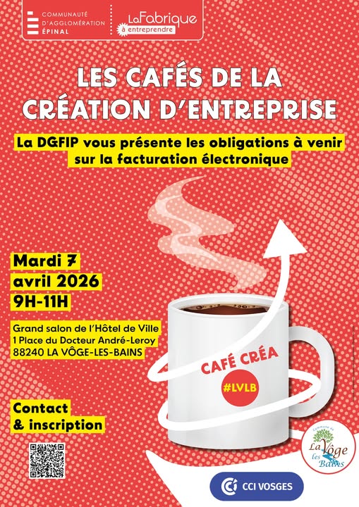 #𝐝𝐞𝐯𝐞𝐥𝐨𝐩𝐩𝐞𝐦𝐞𝐧𝐭𝐞𝐜𝐨𝐧𝐨𝐦𝐢𝐪𝐮𝐞 | 𝐂𝐚𝐟𝐞́-𝐂𝐫𝐞́𝐚 #lavôgelesbains La Fabrique à Entreprendre, de la Communauté d'Agglomération d'Épinal, vous invite au « Café créa » délocalisé à La Vôge-les-Bains : 🔎 𝐋𝐚 𝐃𝐆𝐅𝐈𝐏 𝐯𝐨𝐮𝐬 𝐩𝐫𝐞́𝐬𝐞𝐧𝐭𝐞 𝐥𝐞𝐬 𝐨𝐛𝐥𝐢𝐠𝐚𝐭𝐢𝐨𝐧𝐬 𝐚̀𝐯𝐞𝐧𝐢𝐫 𝐬𝐮𝐫 𝐥𝐚 𝐟𝐚𝐜𝐭𝐮𝐫𝐚𝐭𝐢𝐨𝐧 𝐞́𝐥𝐞𝐜𝐭𝐫𝐨𝐧𝐢𝐪𝐮𝐞 🗓️ 𝐌𝐚𝐫𝐝𝐢 𝟕 𝐀𝐯𝐫𝐢𝐥 𝟐𝟎𝟐𝟔 – 𝟗𝐡-𝟏𝟏𝐡 ⏰ 𝟗𝐡𝟎𝟎 𝐚̀𝟏𝟏𝐡𝟎𝟎 📍 Grand Salon…