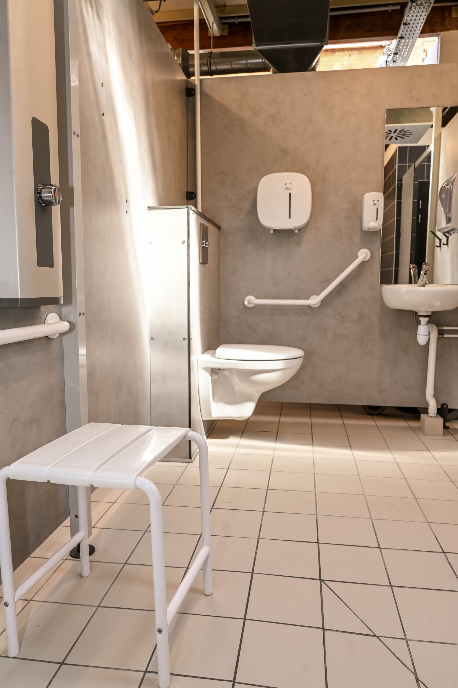 • Le réaménagement des locaux du sous-sol avec la création des sanitaires mixtes PMR et la réfection des sols, afin de garantir un accès élargi et inclusif à l’ensemble des espaces de l’équipement